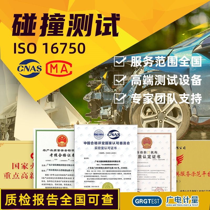 ISO 16750 结构完整性和功能稳定性碰撞测试:广电计量是国内振动试验能力较完善的专业检测认证服务机构之一,配备了(1~35)吨不同推力的振动台,可满足不同尺寸、重量的样品的振动测试需求。